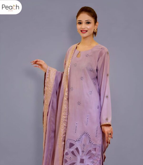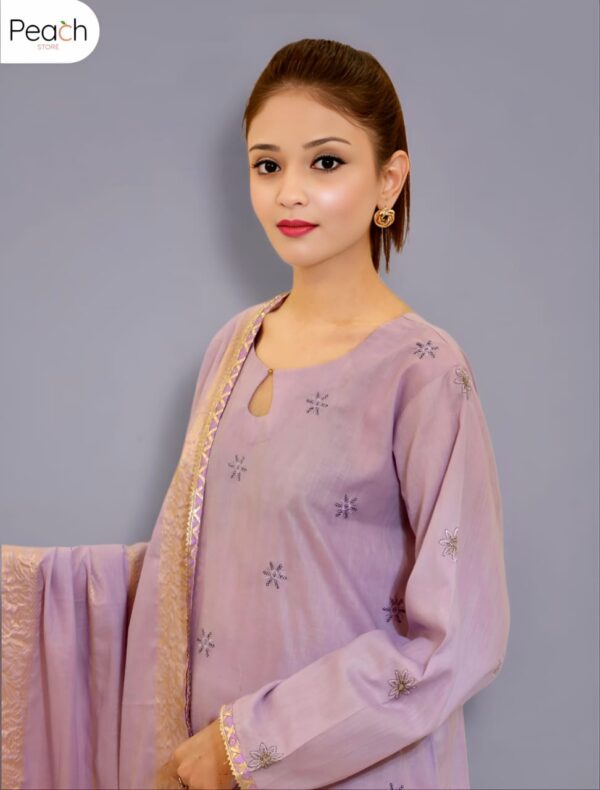 Be the first to review “3 pcs kasturi lawn suit with patch work on shirt and straight cut pyjama .”